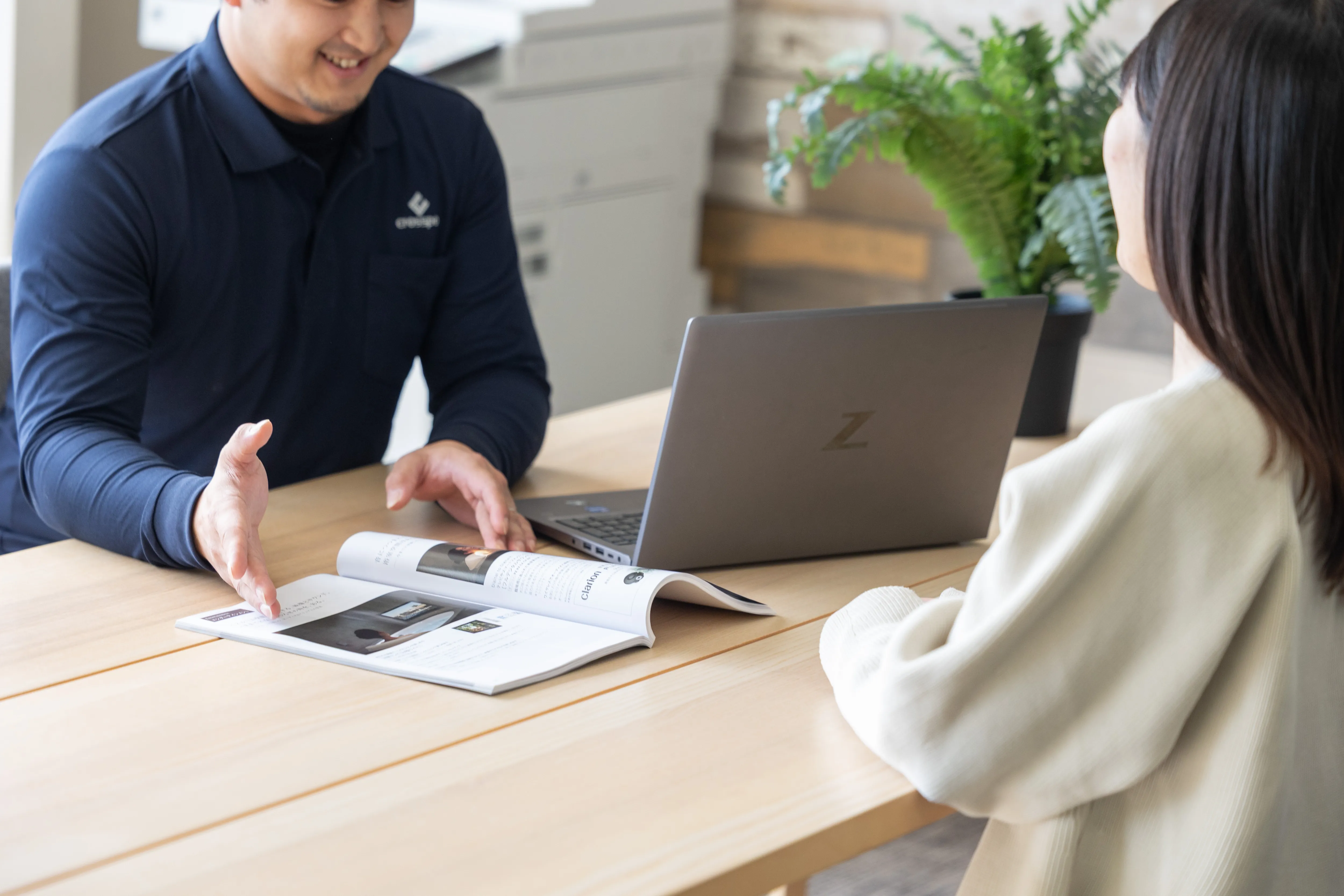 | 提案内容と制作ポイント | 外観・内観・スタッフ写真・現場施工風景の写真など、様々な会社のイメージカット割をご提案し、撮影させていただきました。 |