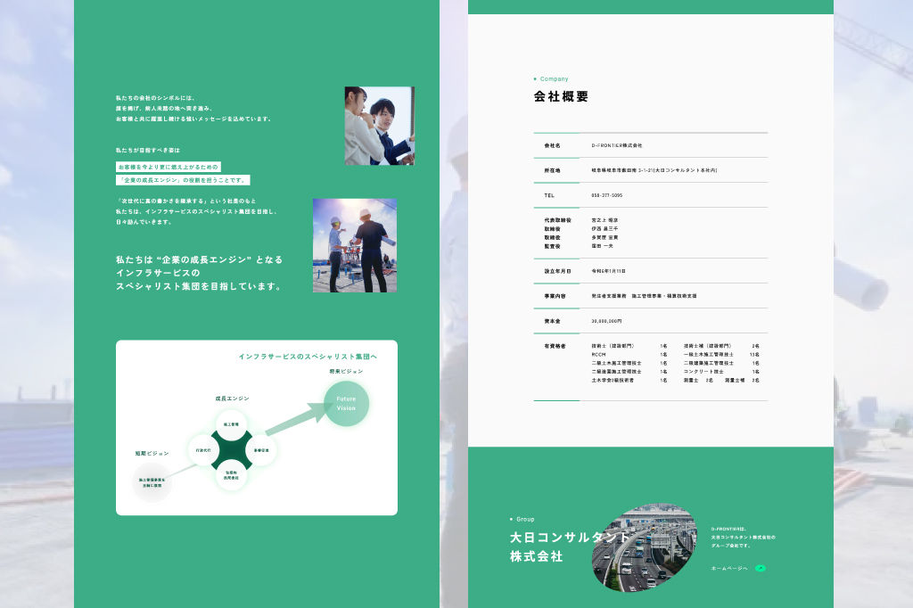コーポレートカラーの緑と白を貴重として、コントラストがうまく表現できるようにメリハリをつけました。見る方が見やすい視認性と、他制作物との統一感・ブランディングを意識しました。