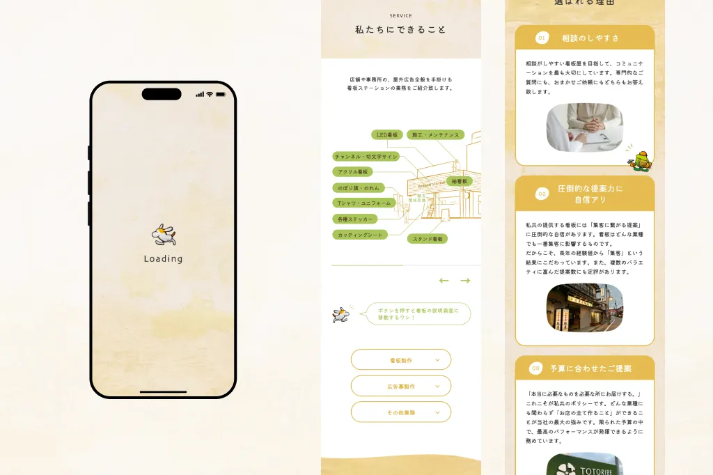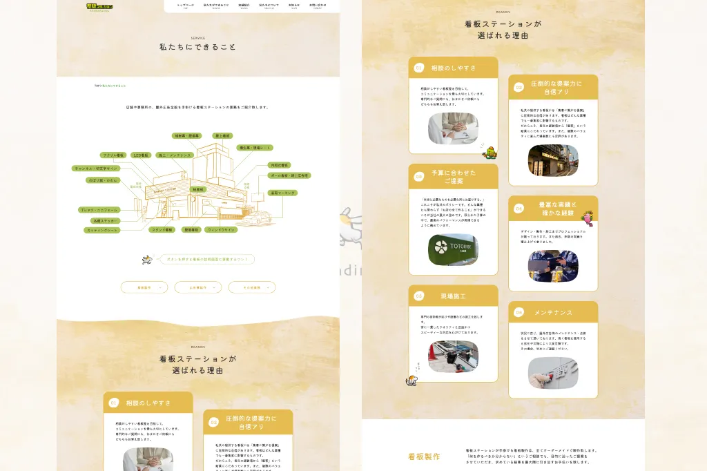 この度はご用命誠にありがとうございました。街の看板やとして人気のある看板ステーション様のホームページのご依頼大変嬉しく思います。現代的なビジュアルに合わせたブランドイメージをご提案させていただきました。