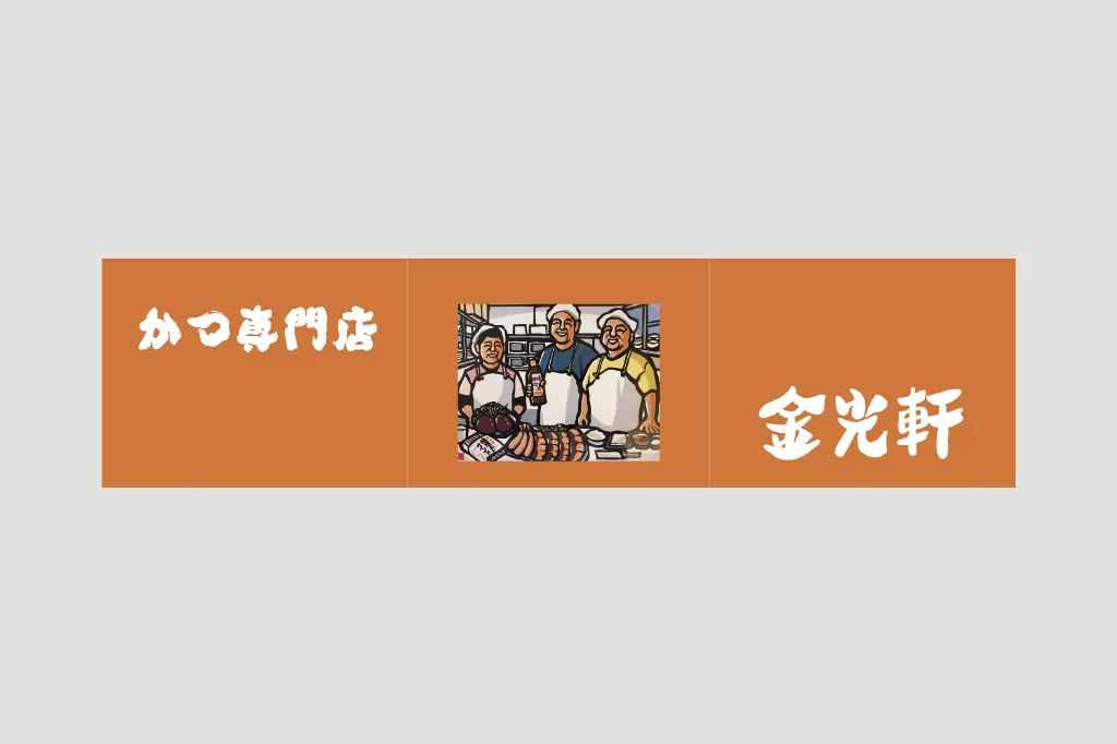 金光軒様の暖簾(のれん)を経年劣化に伴い、デザインリニューアル及びのれんの制作をさせて頂きました。