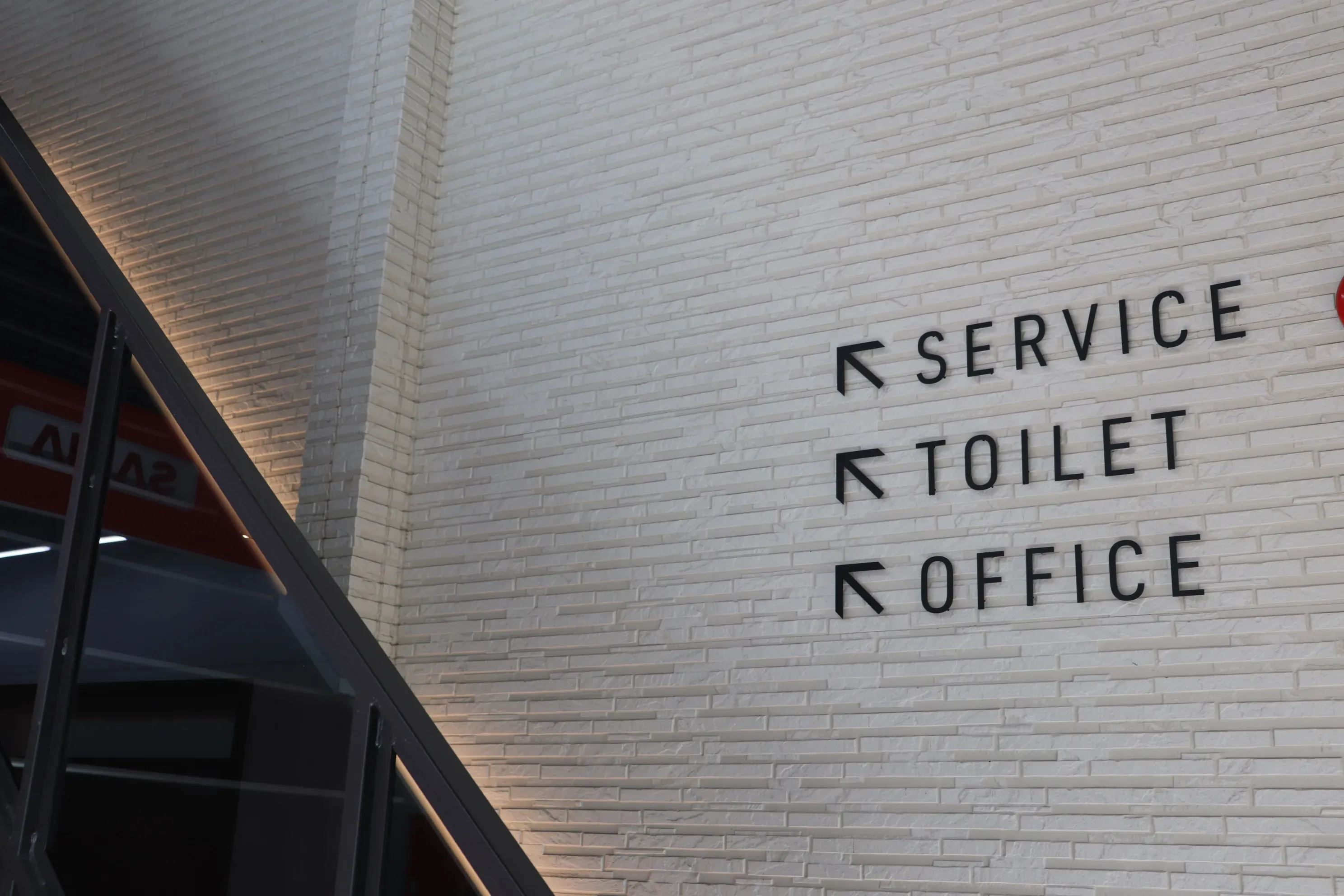 ディレクター 国道からの視認性、そして工場・会社内での案内の役割として。機能面とデザイン面の両軸から、全体のバランス・サイズ・構成に至るまで、細部までブランドイメージが統一されるような内容を追求しました。 デザイナー 「誰が見ても分かる」見る側の立場で、サイズやデザインのイメージをご提案させていただきました。景観との全体のバランスのトータルから意識してデザインを製作させていただきました。 |