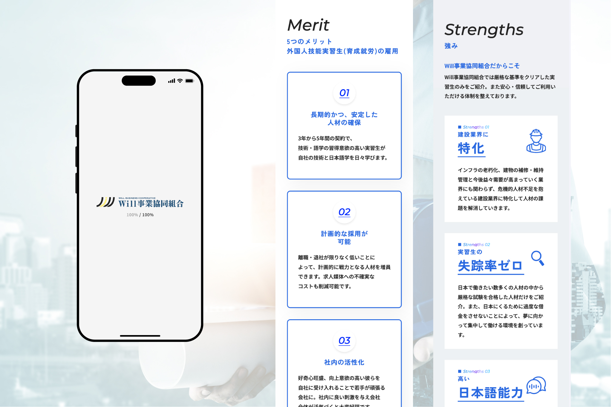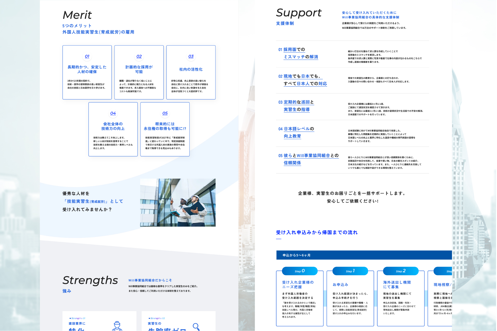 この度はご用命いただきありがとうございます。建設業の発展のため、外国人技能実習生(育成就労)の受け入れを行っている企業様の詳しい事業内容や強みをアピールできるホームページの制作に携わることができ、大変嬉しく思っております。